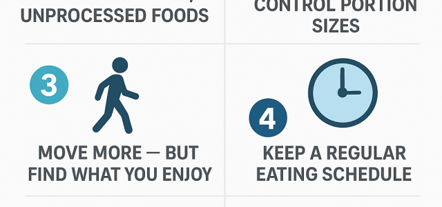 - Adding small movements (stairs instead of elevators, short walks after meals).